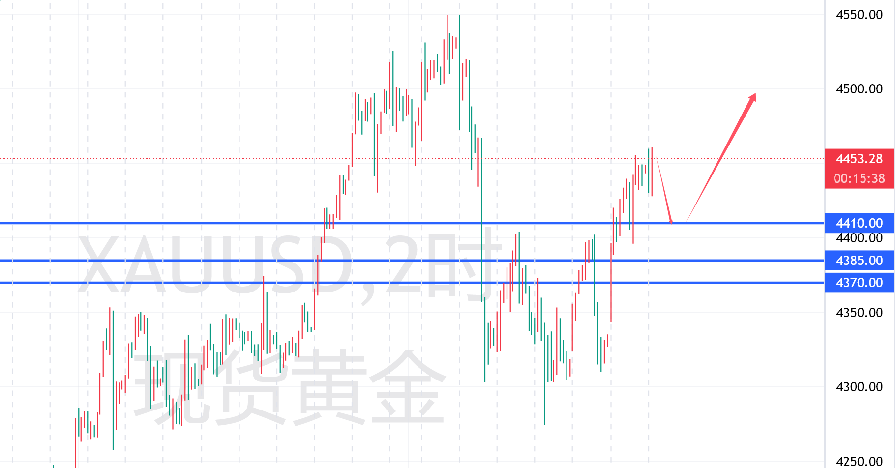 周六的政治边缘事件,让本周一黄金直接开盘走高,而且是强势走高。再加上年底国内对黄金的需求增高,迎来一波旺季,所以金价居高不下,大家切莫猜顶,恐高,操作上以低多为主,珍惜每次的回调! 黄金日k收一根大阳线,布林带三轨均保持向上张口抬高,强势反弹当中,均线系统拐头向上,呈震荡偏强格局。4小时上,价格一路顶着上轨向上张口抬高,短周期均线转平,MACD多头能量没有持续放量,而是走平放缓,上涨动能略有不足,警惕回调。小时图来看,目前价格在不断试探上轨压制当中,早上回撤的低点4430不能破,不然日内容易走深度回调。 日内操作低多为主,下方支撑关注4410跟4385这里,强支撑4370,多单围绕这些位置参