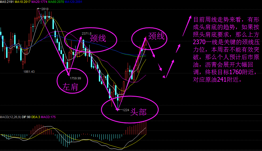 头肩底即将形成,后市原油回调至241一线