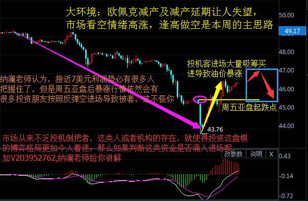 我是纳澜老师,有没有人记得我昨晚美盘的后市布局及解套策略?是的,没错,完美获利+完美解套 OPEC与美国打太极,原油API看空再次测试48美元 基本面: 有报道沙特王储萨尔曼表态称,OPEC与非OPEC的石油减产协议规模空前,但预计油价最乐观估计为55美元/桶,最低为45美元/桶,市场对沙特王储讲话解读为沙特可以接受45美元/桶