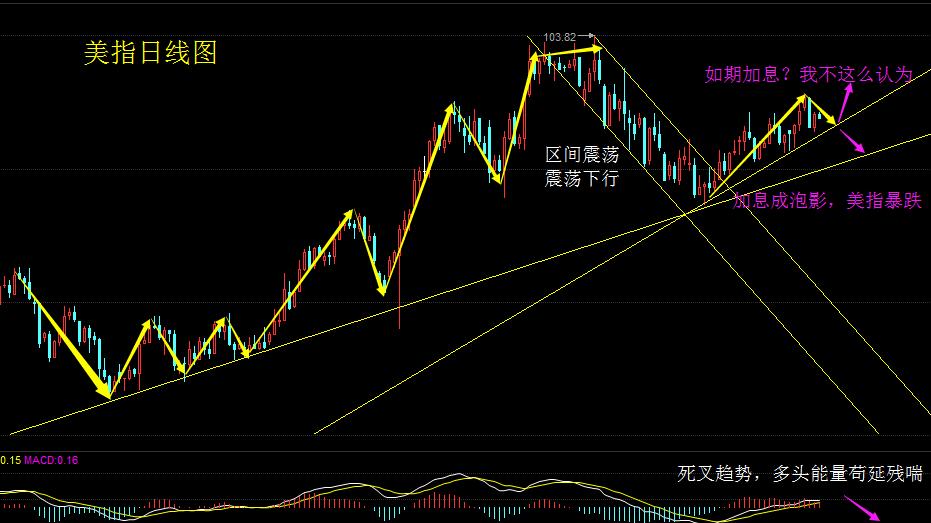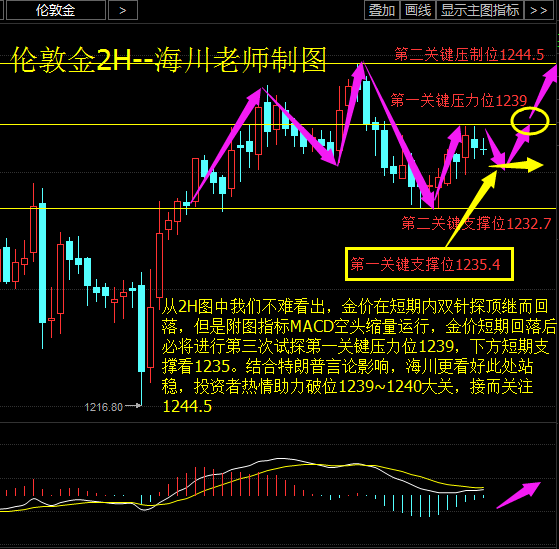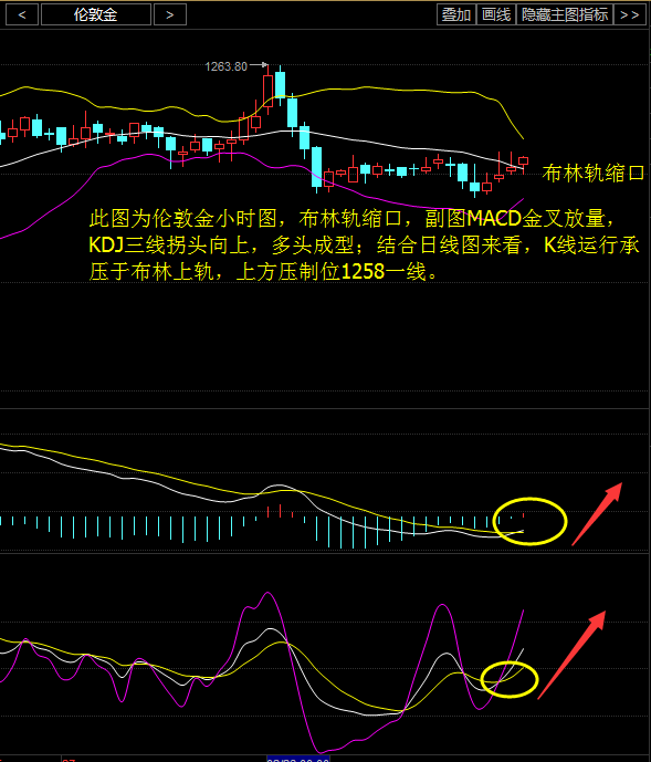 背景分析 因美元在连续10天的涨势之后暂歇,美国国债收益率下降,股市走低,而同时投资者逢低买入黄金作为对冲美国和欧洲政治不确定性的工具,黄金价格收盘上涨,连续第二个交易日走高。今天周线收官,昨天我们已经分析过,如果本周报收T型线则下周有望看新高,但如果说本周报收高位锤子线,在一定程度上则是见顶信号。目前