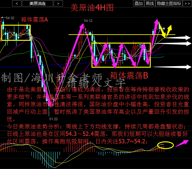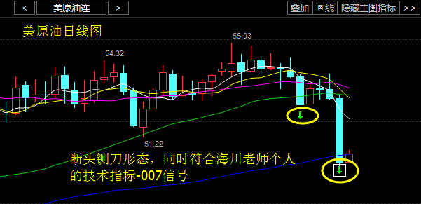 原油技术面分析: 美国WTI原油从四小时走势图来看,油价以难以想象的跌势直接跌至50美元大关,一路跌穿均线、以及各个关键支撑,形成一个断头铡刀的K线形态。 不过目前来看50关口支撑还是足够强劲,至少短线能够带来提振,那么暂时看作触底,阻力看向51.2附近,支撑关注50大关以及49.6附近。从技术面来看,断头铡刀形态后面