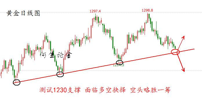 相聚,却来不及牵手,相识,却来不及一起。流转的时光,照一脸的沧桑,就如昙花一现,来不及细细回味,每个人都有一段悲伤,想隐藏却又欲盖弥彰。就如阴阳K线间的博弈,稍有迟疑就会错失良多,回头不是精彩就是遗憾,下一秒在哪依旧是个迷,可这正是投资之乐趣所在。 黄金,在周一大阴K线延续性下跌之后,并没有延续向下下