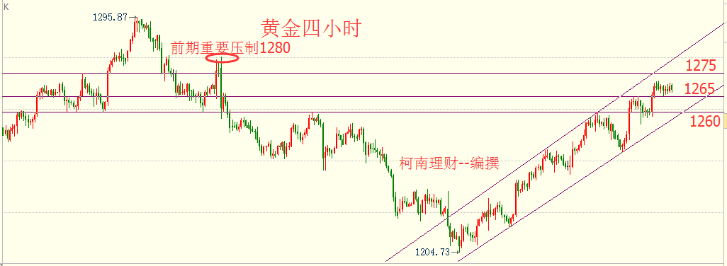 黄金多头放缓,原油回落继续多,天然气破新低 黄金技术面分析: 黄金现报价1269,周一盘中并未破位1265的支撑,本人给出的多单完美符合行情走势,目前多单已经获利4美金,昨日开盘就一直处于震荡下行的走势,没有到达本人给出空单的进场点位,目前日线来看,布林带开口,K线运行于布林上轨下方,均线指标呈现多头,附图指标