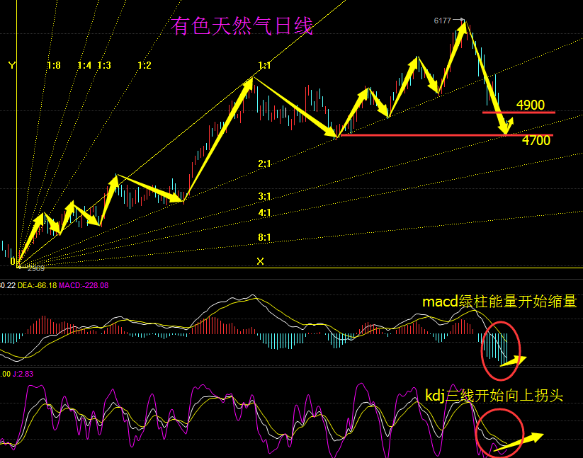 柯南理财:天然气原油双宿双跌,EIA预测利空! 天然气技术分析: 天然气在13个交易日的内直接下跌了近1300个点,平均每日跌幅100个点,昨日天然气下破了5000整数关口,再次打开了下方的空间,最低下探至4935点位,后收盘于4962一线,今日早间开盘直接低开40个点,直接跌破黄金分割线4945一线阻力,目前有轻微反弹的迹象,但