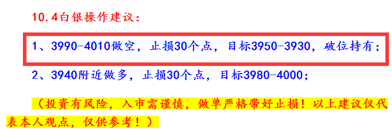 柯南理财: 10.4金评白银空头发力,单边200个点,晚间实时解套! 投资朋友午夜好!今天本人的建议有关注吗? 早间本人就说了白银大趋势看空,但本人在3940一线博取的多单没有及时离场,最后被扫损,我也是及时转换思路,扫损立即做空,最终把握住了64个点的利润,今天的白银晚上发了疯似的跌,目前日内已经跌了近两百个点,