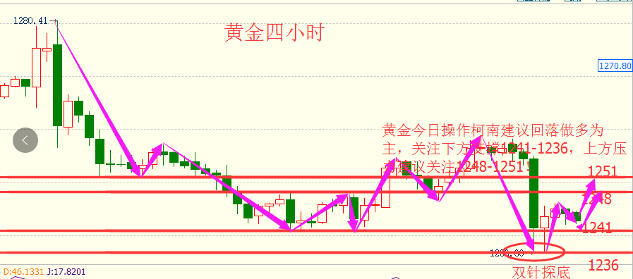 黄金低多看力度,原油谨慎追多防回补,7.5金油天然气策略 黄金行情分析: 昨天是美国独立日,行情比较清淡,最终以止跌收阳倒垂线。整天的行情波动都比较小,上方阻力1228一直没有到达,随着欧盘美盘的开始金价也一直12201228区间低位震荡,经过昨日一天的盘整,预计今日行情会放量,但是放量空还是多?首先从日线上分析,