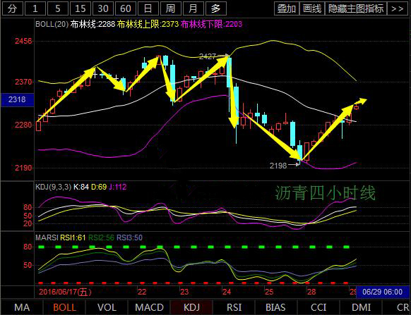 一定要远离那些充满负能量的人,他们会在不知不觉中偷走你的梦想,使你渐渐颓废,变得和他们一样平庸。投资也是这样,你向没赚到钱的人请教如何赚钱,这本身就是一种错误,他无法教导你赚钱,只能带来负能量。 昨天EIA数据利空,有色沥青经历长时间的盘整,最低跌至2320一线,凌晨再次反弹至2357一线,早间开盘高开高走,目