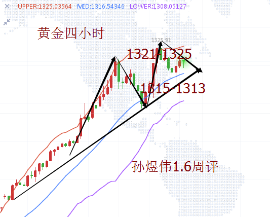 昨日美元指数再度下跌,日内低点到达91.7附近,而黄金总体偏向震荡上行,金价自1236上升在1321开始转折,这意味着行情进入了高位震荡调整的阶段,行情高低起伏,低点由1305至1308上移,高点自1321到1326再到本周的1327,所以才有煜伟近期早评给出回落做多的策略,目前本周高低点暂时定格在1308和1327,下方从1236开始的上升