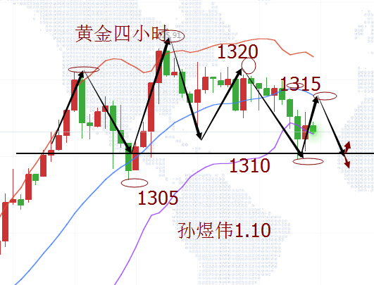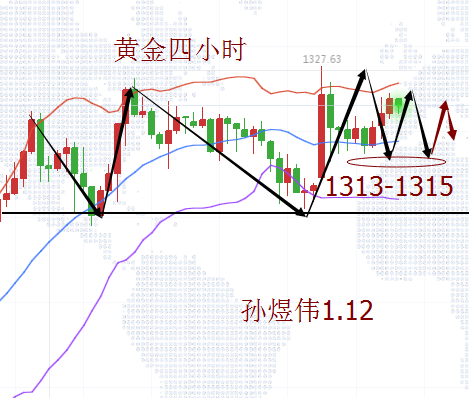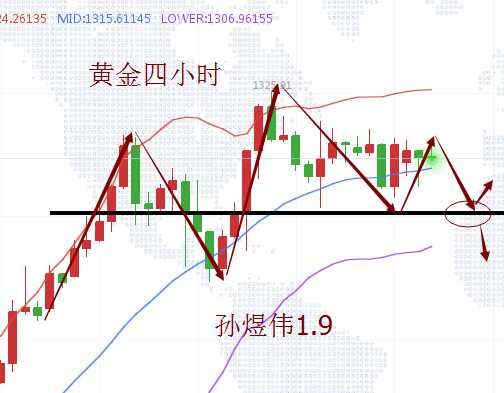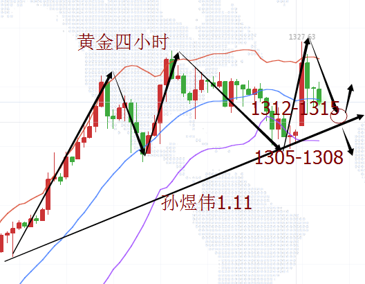 美指在稍微的提振反弹后又进入跌势并且维持震荡,黄金从1321开始跌,到1305一线停止,17美金左右的一个回补行情,说大不大,说小不小,也就是这个时期出现了多头滞缓的状态,也是这个时候很多投资朋友方向把握不当导致多空来回做并且有所亏损,煜伟文章之前也提到过甚至不厌其烦的说到大的趋势下要顺势而为,合理把握仓位和