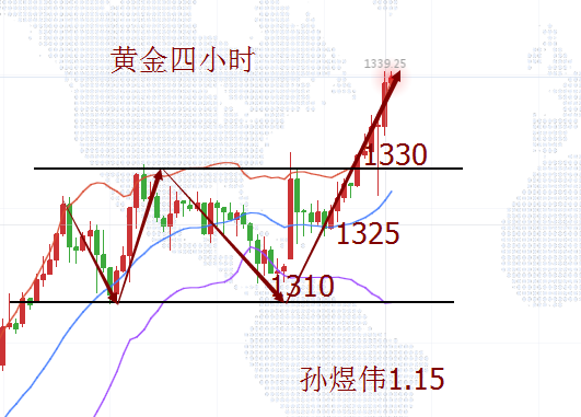 回顾周五美元指数走势,再度走低至90美元关口,黄金则突破了1330高点,到达1339高位。多头无疑是一跃龙门,煜伟对此并没有太大的惊讶,此前我也提到过2018金价会持续走高,会是一个收获之年,时间稍稍的来的太快一些。年线的高点1375-1357连线阻力是1350,也就是这一波上升的目标位置,下一步则是1375-1400的重要点位。煜伟