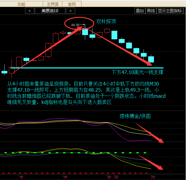 消息面: 重点解析: 技术面来看,过去两周银价在 20.50 美元附近遭遇了较强的阻力,本周跌破了 5 月底以来的上升趋势线,银价下行风险加大,目前在布林线下轨 19.20 美元附近获得勉强支撑,继续关注 19 美元附近的支撑,一度跌破该位置,银价将打开下跌通道。 技术面来看,目前美油正面临布林线上轨的阻力,而且 KDJ 指标