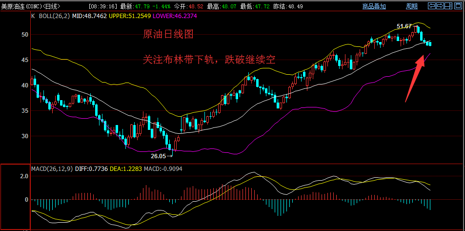 程慕飞:6.30现货白银,原油行情分析及策略 现货原油程慕飞微信chengmufei昨日收成一根带有小上影线的中阳柱,行情最低跌至60日均线之后收到支撑,行情小幅反转回升,均线系统交叉排列,日线级别布林带走平,附图指标缩量上扬,短期行情笔者程慕飞认为还是会进行横盘整理。从4小时图上面来看,油价布林带走平,附图指标量能