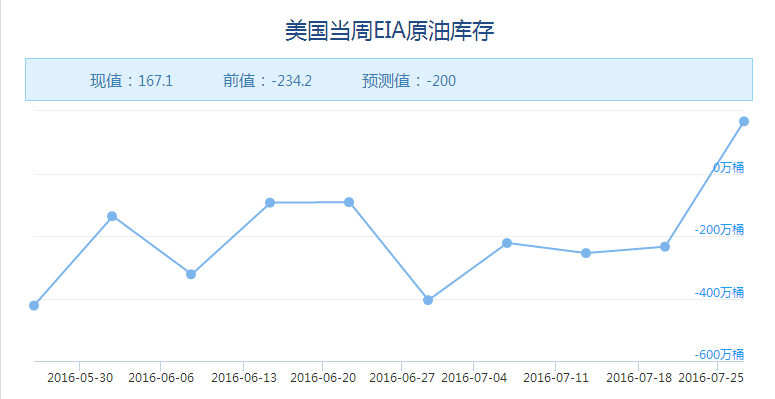 【霸乔财金】:7.27午夜精评原油,白银,天然气分析及解解套策略 消息面: 北京时间周三(7月27日)晚22:30,美国能源信息署公布的截至7月22日当周原油库存录得增加167.1万桶,预期值为减少225.7万桶,前值为减少234.2万桶。这是EIA原油库存连续第9周减少后增加。具体数据显示,截至7月22日当周汽油库存录得增加45.2万桶,
