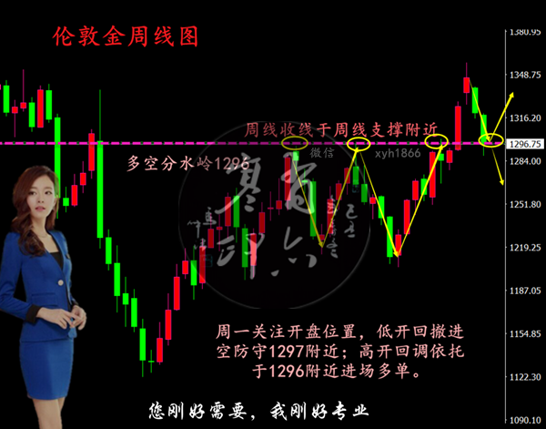 -----金价周五短线反弹,下周走势分析,反弹1305不破继续做空不变!! 黄金方面,周五行情收线于W底颈线支撑附近位置,上周整体行情可见延续前一周的空头行情,价格指数继续走低触底反弹,下方依旧关注1288低点情况。行情触底受到支撑反弹至周线支撑附近,从周线图上来看,行情在周四是受到了10日均线的支撑得以反弹,可见