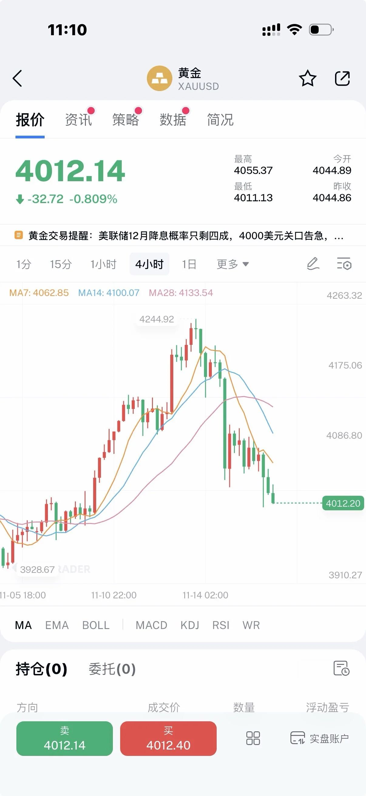上周五黄金市场的暴跌给多头浇了一盆冷水,看涨的情绪再次动摇,一夜之间暴跌了一百多美金,国内黄金价格重新回到920左右。 关于什么原因下跌众说纷纭,有美国****开门影响,也有说获利盘了结,但这不重要,重要的是接下来是涨是跌? 上周五我重点强调了4150这个关键的位置,这个位置的得失直接决定了接下来多空的方向,果然4150破位之后迎来了瀑布式的下跌。 在周五的内部直播时黄金已经失守了4150的关键位置,当时我就强调反弹之后靠近4150到4160去空,不能着急的去抄底, 4100的位置根本守不住,极限可能会抵达4050美元。 一直到周五尾盘的时候调到了4030附近,这个过程中几乎没有太大的反弹,