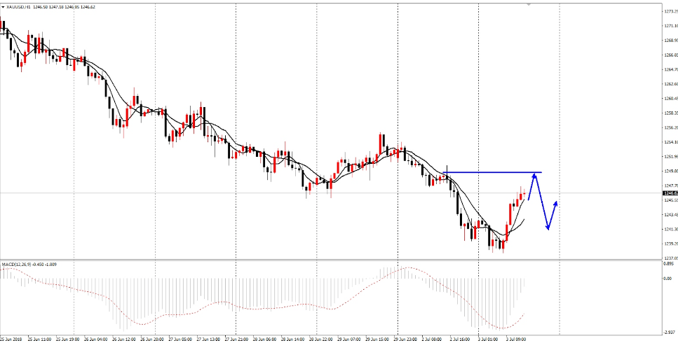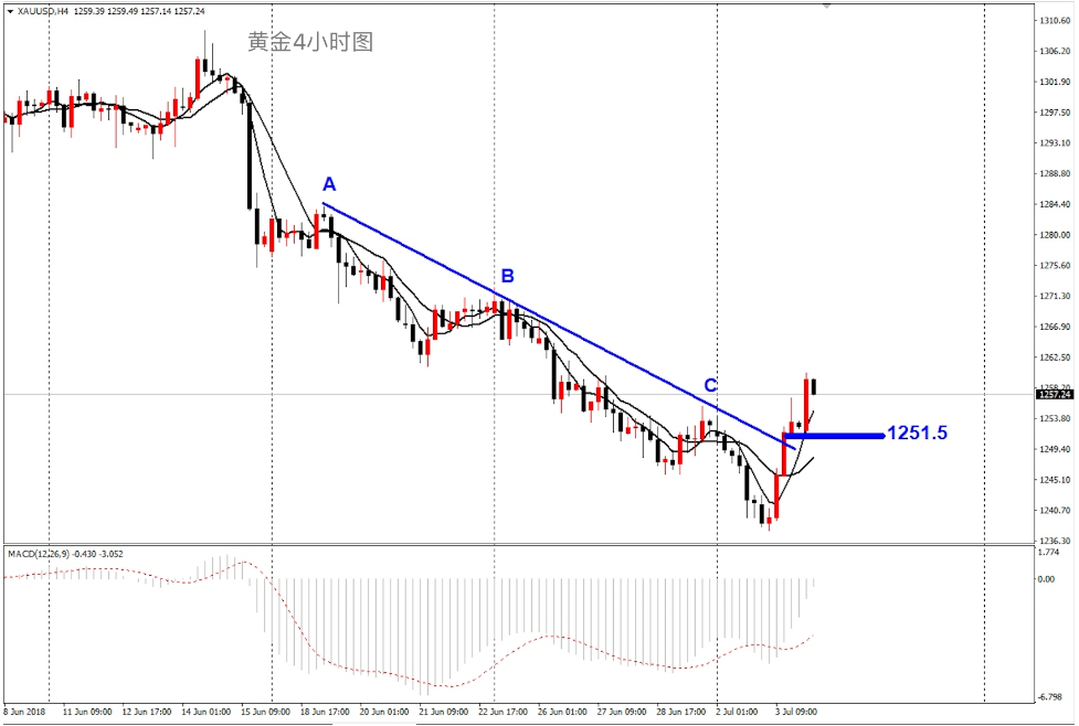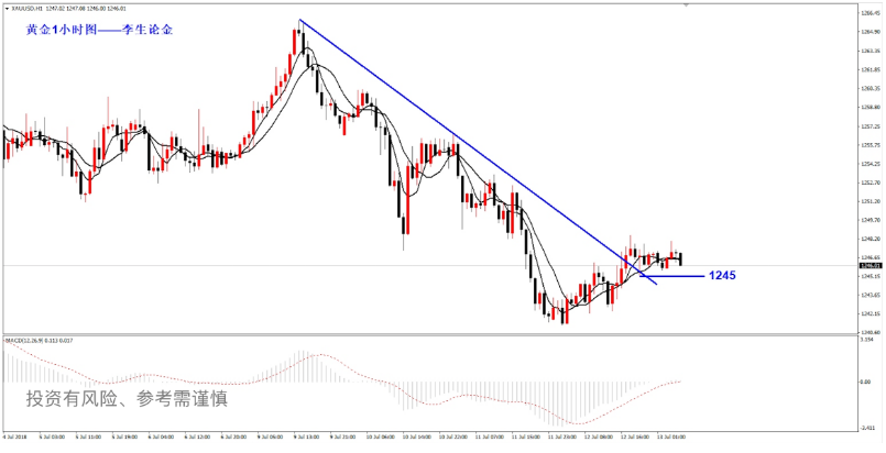 周二凌晨,近期备受关注的德国政坛局势出现突破性的积极进展,德国总理默克尔消除与执政盟友在移民问题上的分歧,预示这场危及联合政府存亡的危机得到化解。或许对金市未有影响,但依旧有一定的参考性。 受此消息刺激,欧元/美元短线跳升,回至1.16关口上方。此外,受美元走强以及风险偏好情绪回归打压,金价再度大跌,一度跌破1240美元/盎司关口。 然而,早盘急跌无‘好事’,以1243为起跌点,跌至1238附近,并没有急着今天追空,而是在1238-39的位置布局了一次多单,完美的止盈于1245-46的位置,与早间的博文和视频判断一致,真正的下跌一般很少发生在亚盘,而急跌的目的是空头能量的释放而已。 早间,提