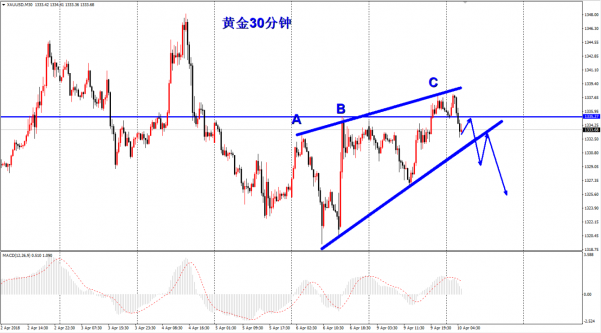 有时候,选择放弃并不是无法坚持,而是突然发现即使坚持也无法实现,能力决定能做什么,动机决定要做什么,而态度决定了会做成什么样子! 周四,避险性的数据并没有二次推高金价,从早上以1354的高点,一路慢跌向下,中途几乎没有任何的反弹,这种行情是最麻烦的,一直延续到了凌晨收盘至1334,跌了近20美金。 这一次,美国