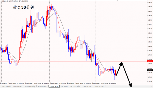 周一,金价延续了下跌,这个并不意味,上周五的收盘很弱,1290的开盘就加速下跌,之后欧盘再次配合这样的下跌,并且完成了破底的动作,美盘反弹1283-84就是送钱,亚盘下跌,欧盘延续,美盘前的反弹就是诱多。 今天,金价开盘之后再次续跌,之后反弹1277之后下行,整个行情的走势表现的都很弱,上周五过夜1283附近的空单也完