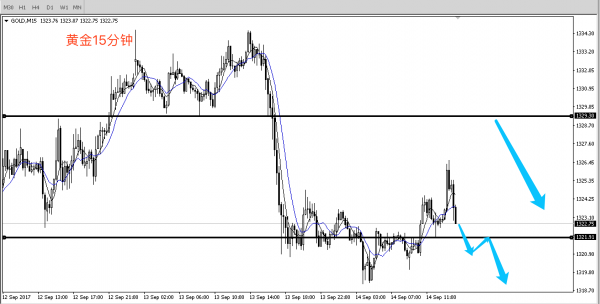 今天,亚欧盘的黄金,还是以1329/30早上的高点为压力整理,一直持续到了美盘前,凌晨的高点位置始终没有破,而1329没有站上之前,看空的思路就没有改变,目前金价已经成功击穿了亚盘的低点抵达1322.5附近。 此次,下跌之后的行情,一直延续着台阶式的下挫,每一次的反弹都是刚好到前高点附近之后再下跌,昨天是以早盘跳空后