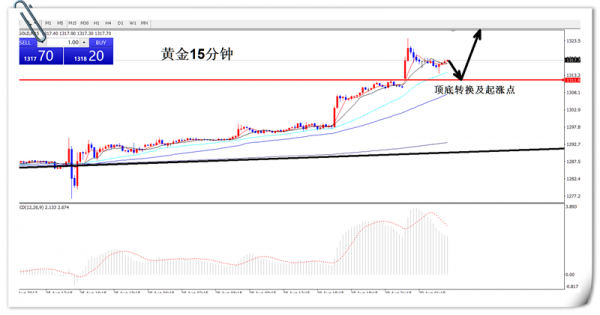 笔墨画不尽天下,你常看不清方向。有杯敬过往,一杯敬荒唐,等待绝不是自我麻醉,而是有所期待,没有信念的坚持很容易放弃,没有依据的交易很快恐惧,不能让获利成为变态,而亏损却成为常态。 昨天,黄金价格在亚欧盘波动不大,试探了1313-1314的关键压力,这个位置是冲动1326时候跳空高开的缺口位置,而回撤之后失守,反弹
