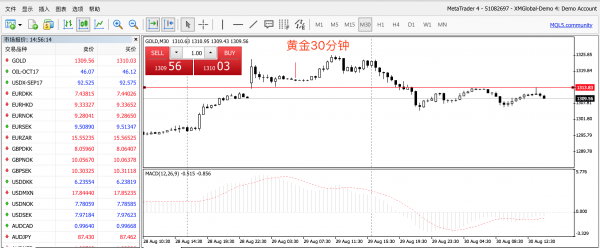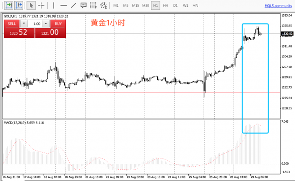 最美的不是这下雨天,而是曾经小时候躲过的屋檐,坐在书房看着K线之余光,扫到这街上车水马龙,喜欢这样的天气,又不用打伞,像雾霾又像雨天,凉凉的,配上这波动如预期上升的行情,很舒服!瞬间觉得让人更清醒!8月即将在这闲忙当中渡过。 周一,金价借助着上周五的强势延续,依托跳空高开之后1291的支撑点亚欧盘持续性的上