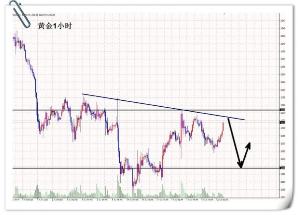 夕阳的余辉透过窗户,洒在桌角,高温后的傍晚依旧热度不减,键盘上的字母,可以酝酿出来多空博弈的精彩,手机放在一旁,好久没有响过,是谁到底忘了有我的存在?别说话!我真的没有一丝的难过,继续让你我安静的等晚上美盘的光临多空的袭击! 今天,金价从早上下探1215之后,一路的慢涨向上,到了现在1222的点,能不能今晚拿下