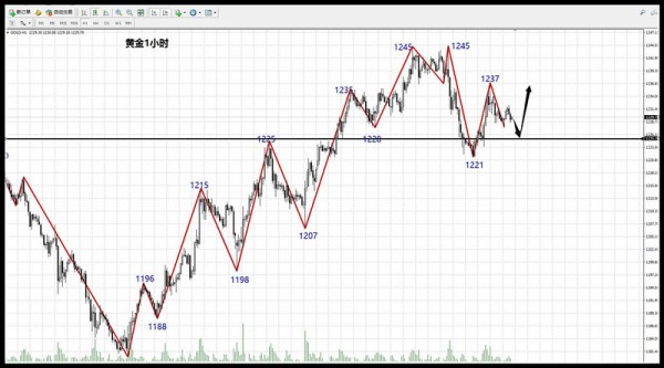 风可以吹起一张纸,却无法吹走蝴蝶,努力不是变相的证明,而是一种本能的坚持,自律不是框架下的约束,而是认识后的选择。人生是一次不断选择重叠的旅途,投资却是这次旅程中是精彩的瞬间,学会享受、懂得检索。 上周,黄金价格走了一次倒V字型的波动,以1221为支撑点的周一上升,1225压力之后连续触及1235、1245的高点,而