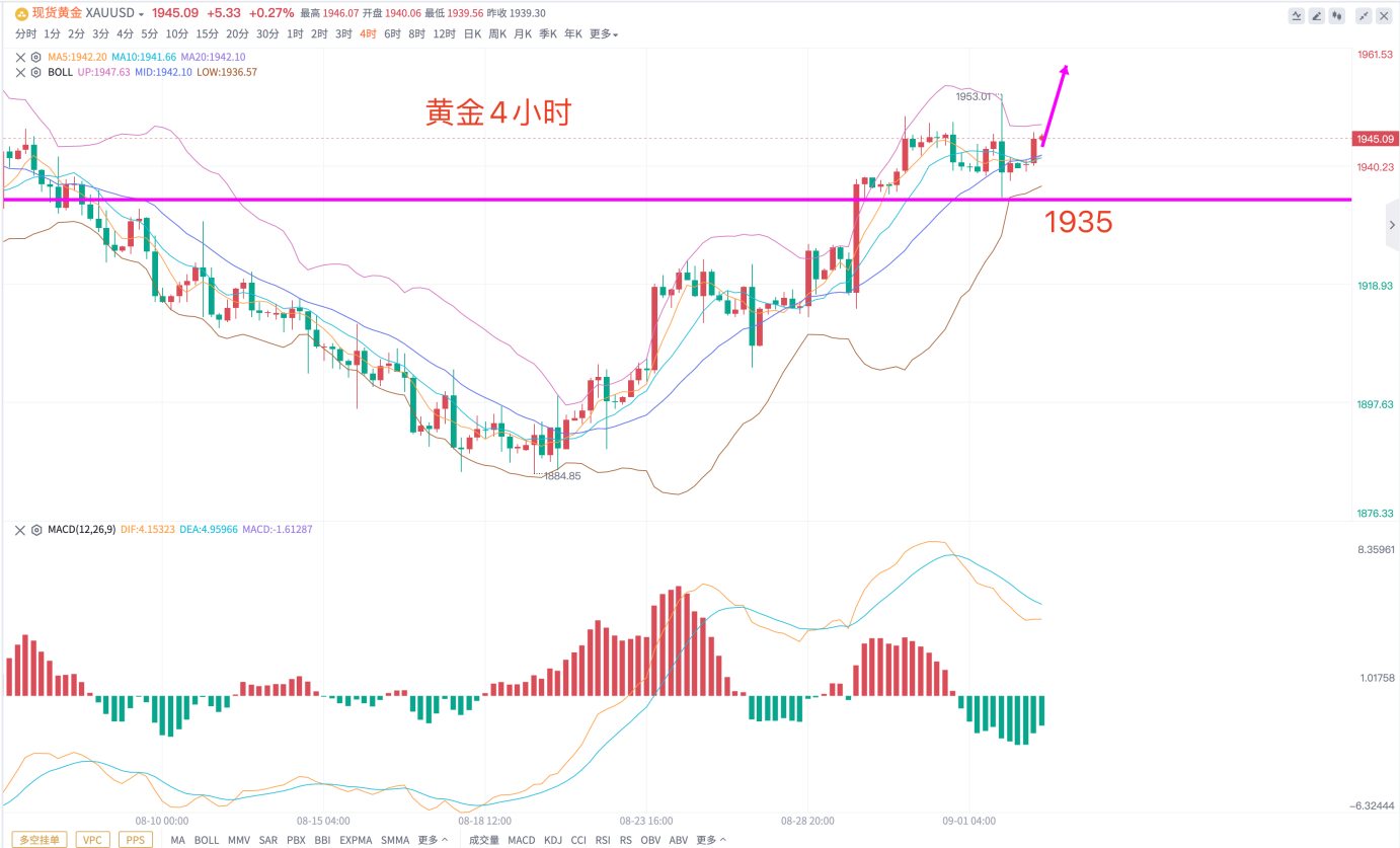 让时间和金钱去努力工作,你只需要坐下来,泡杯茶,翘着二郎腿等待结果,人可以闲着,钱不能闲着,永远找更会赚钱的 人,把钱投给他们,让他们昼夜努力。这是投资者最美好的憧憬和目标吧! 不过,光鲜背后得接受不如意,就像昨晚黄金1900拉升到1920,意外谈不上,也没抓住,本来就没有这个打算,更谈不上错 过,经过三天的整理之后,多头借助美国制造业PMI利多的影响,反扑闷杀空头,尤其是不设损的空头! 有人说:亏死了,爆仓了,其实不系安全带,就算是顺势也照样牺牲,市场不是多,就是空,比方向更关键的是纪律,并非 我的诡辩,这一波空头行情做了一个月左右,一个反弹又能怎么样?1900即使空了到1910也损旧,1