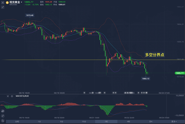 瀑布,为了奔向江河湖海,即使面临百丈深渊,仍然呼啸前行,决不退缩,请看护好你我曾经的激情和理想,在这个怀疑的时代,依然需要信仰!脆弱的心灵创伤太多,追求才是愈合伤口的良药!小鸟眷恋春天,因为它懂得飞翔的意义,你我痴迷 K 线,因为都明白波动的刺激。 周二,金银市场出现了久违的瀑布单边,金价自 1955 美元附近跌至了 1882 附近,单日跌幅达到了 70 美金,这是近日以来单边下跌最大的一波行情。白银从 27 美元附近跌至了 23.6 美元,跌幅更是达到了 3 美元以上,相当于黄金 150 美金的波动。 今天, M 联储关于货币政策的会议将有望利好黄金,在 2023 年之前不再加息,