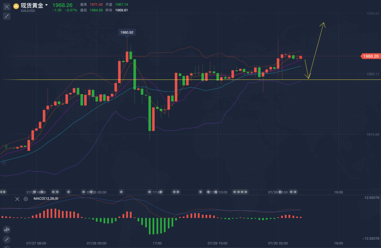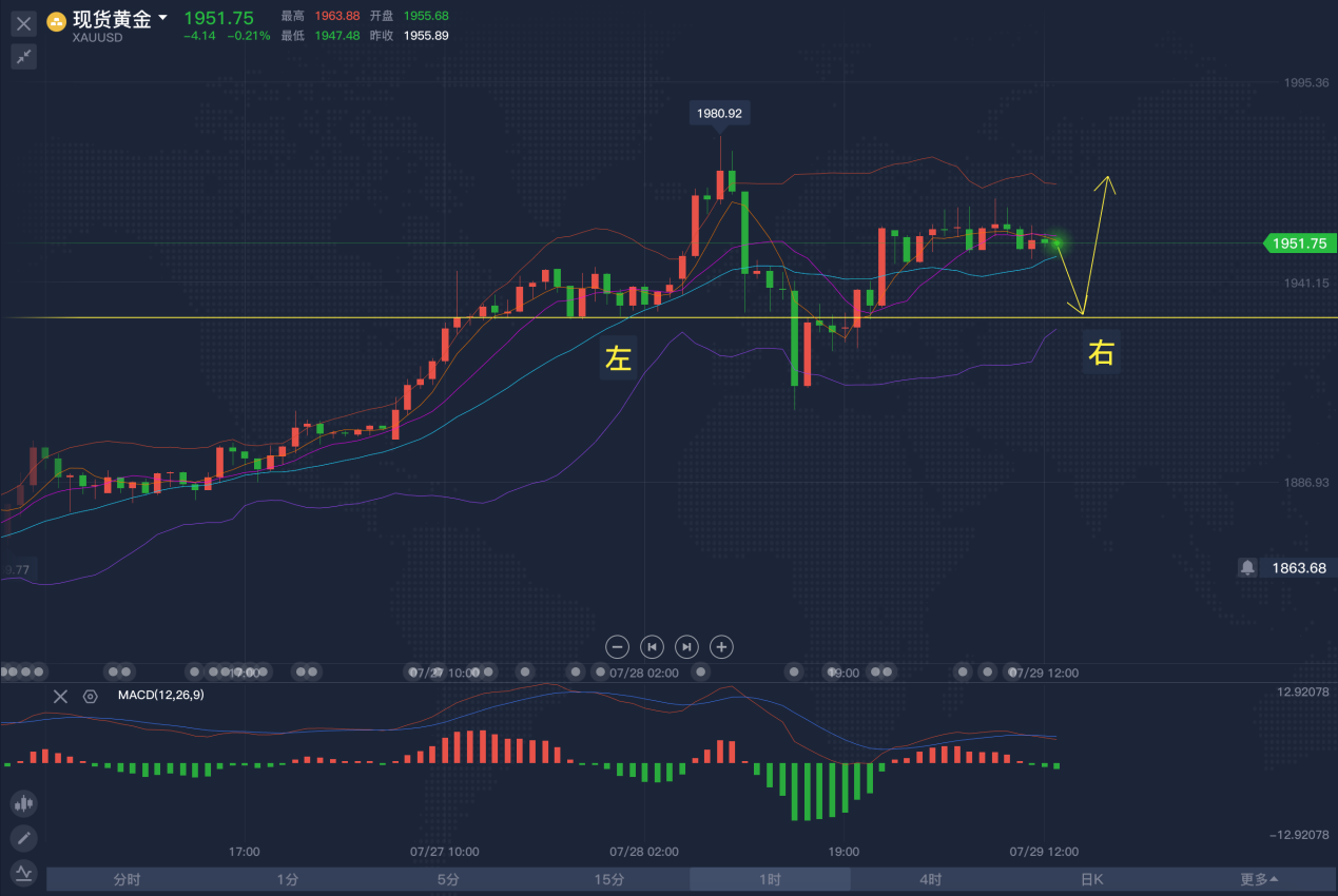 总有一天,我会千杯 不醉,万人仰望,笑容得体,再也不提及远方,眼 下 即是最好时光。曾经的单边,终究是部分人留下的狼狈,以为震荡会冲淡一切,其实只是徒劳,单边才是所有人的向 往 ,当幻想与现实面对时,总是一半人开心,一半人痛苦,若太多不切实际的希望,又何来撕心裂肺的绝望! 最近,金银迎来了断崖式的暴跌,一场下跌让整个市场冷静下来了,周三行情并没有太大的变化,主要还是修正为主,中途修正下探后,反弹也只是过眼云烟,金价压制在 1950的下方一直持续整理,暴跌后的行情没有延续性,说明这种暴跌只是暂时的。 3月份,由于全球经济被突然按下“暂停键”,黄金市场也被错杀,导致金价大幅下跌,最终还是