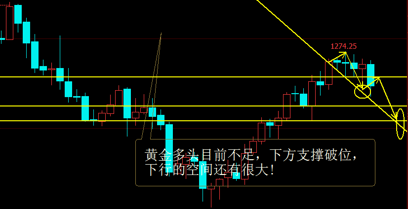 本周交易日结束,有欢喜有悲伤,不管怎么样都已成为历史,黄金在上周收大阳的情况下,本周并没有延续上周的大涨格局,继续走高,小幅冲高后最终在大非农之夜走出下跌的态势,本周黄金走的一波好几折,周五黄金在大非农前一直在1268附近震荡,非农利空后,黄金大跌,释放了本次的空头情绪,行情就是这样,当大多数人都觉得自己