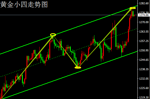 黄金技术面分析 近期黄金价格受市场消息刺激一路刷新高位,短期上方在1280形成阻力,这里是周线及日线上轨压制点,黄金要继续新高,这里必需要突破,同时邵霖希老师认为,若短期黄金再次突破1283可直接追多看至1295-1298一带。 不过今天晚间突破的可能性不大,黄金周线及日线上虽然有偏涨,但是1280阻力比较强势,四小时及小