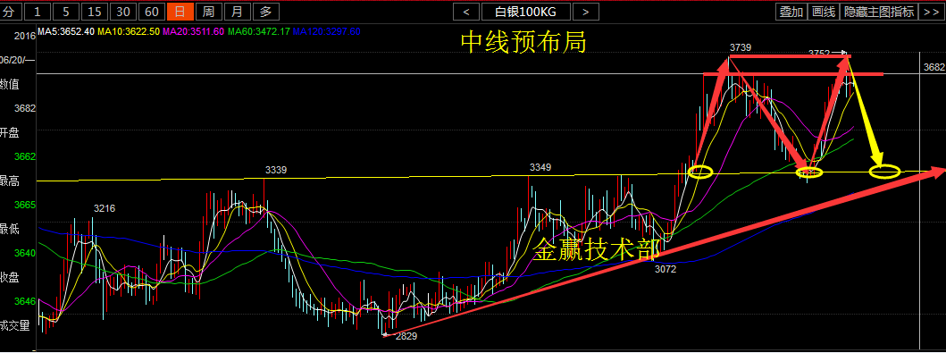 伴随避险情绪的升温,黄金作为最大的受益者之一,上星期暴升近100点,做多的朋友肯定是怎么都赚了,我们白银随后跟上的3700-3720多单也是一样。分析趋势,白银价格静静跟从黄金走势几十年,黄金涨,白银涨,黄金跌,白银也是紧跟从其后。依照这个惯性,后期操作也没那么复杂了。白银看准方向跟着黄金走,肯定没那么容易出错