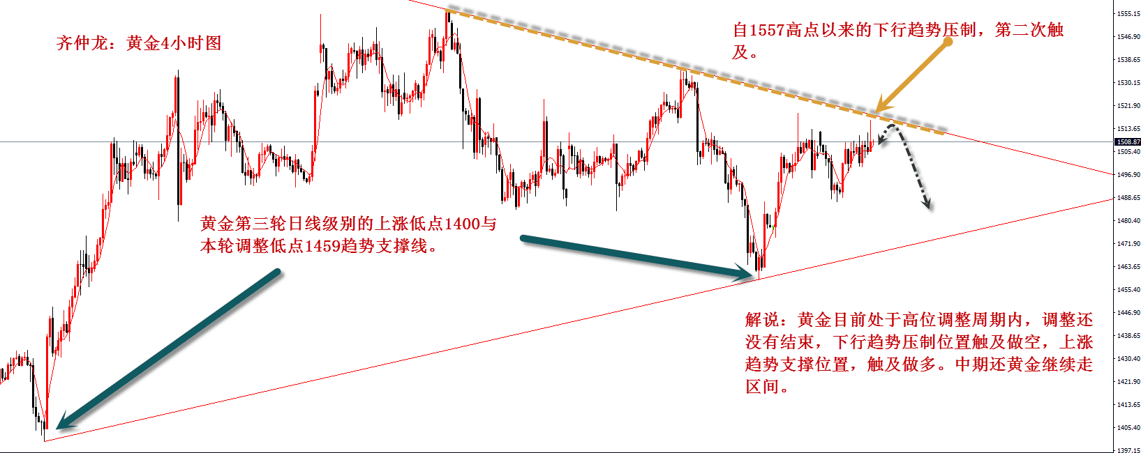 生活的意义在于心存远方,而生活的经验则来自于回顾过去。每个人对于成功都是向往的,但成功在有些人心中就像奥运圣火一样永不熄灭,如此,历经千难终取得成功。放下过往收拾心情,每一天都是新的开始,而要沉迷过去自我否定,时光将被消耗,机遇将会溜走,永无出头之日。 国庆期间黄金探底回升,维持1500上下震荡运行,大趋势依然是多头格局,这一点毋庸置疑,但中期维持高位区间震荡的基调未变。全球经济下滑呼声越来越高,经贸摩擦导致的经济下行风险中期将存在,全球各大央行纷纷降息应对,而美联储扩表的预期越来预期,这一切都将支撑黄金中长线上涨。目前只是黄金牛市第一阶段的调整行情,并非见顶下跌,所以从这一点上来看,目前黄