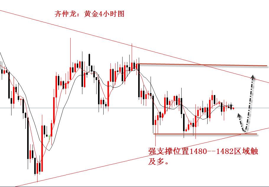 买其所值,卖其疯狂,该跌不跌,理应看涨;该涨不涨,理应看跌。没有一成不变的趋势,周期拐点和阶段性高低点才是真正的交易机会,其他的短线洗盘和多空转换,都只是为了趋势行情蓄势而已,只要找准阶段性高低点区间,或行情的主趋势,实际交易就会变的很简单,我们只需在一些绝对区域去阻击即可,而中间的洗盘其实就是休息机会。做交易,只要懂得关键位置出击,中间位置休息,一切都将变得简单。 黄金昨日持续盘整之后美盘回落,短线下跌之后企稳1480上方,日内早盘金价试探1481一线后企稳未能续跌,目前来看,短线还是处于震荡区间之内,昨日给出黄金靠近1480做多的思路,今日依然有效,目前处于高位区间盘整,加之横盘时间过久