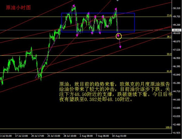 最近原油方面的行情还是比较好操作的,就是一个区间震荡,面对这样的行情,把握住的人赚的钵盆满满,也有人亏损严重,那些亏损的比较严重的朋友要学会从自己身上找原因,当你连续亏损的时候,请不要盲目的去操作以求挽回损失,要及时的调整好自己的心态,找到自己亏损的原因,方得始终。 原油EIA利多,数据显示截至8月11日