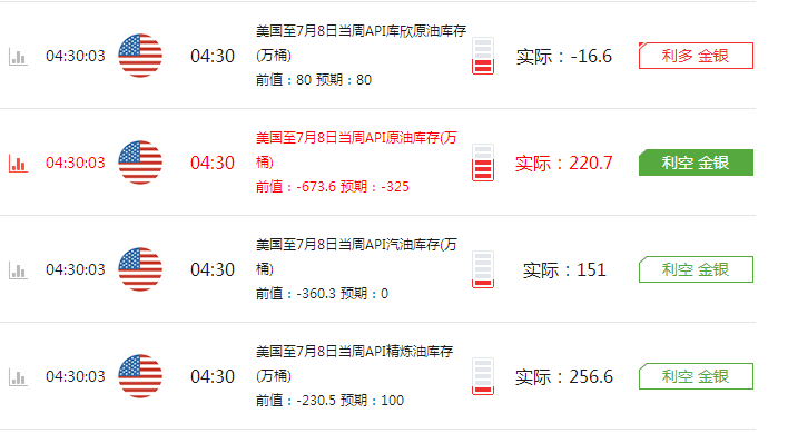 文/金晓佳人 【国际消息面】 路透社评美国至7月8日当周API原油库存: 美国石油协会今日宣布,美国当周原油库存意外增加220万桶至5.231千万桶,创10周以来新高,而此前预期是减少325万桶。此次原油库存的意外上升缩减了美国油价的涨幅。汽油与精炼油库存均有所上升,但库欣原油下降了16.6万桶。 利空分析 1、亚洲炼油厂正在