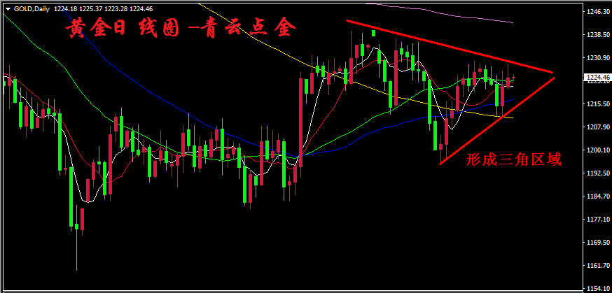 青云点金:11.30周线收官,今晚黄金原油只做空! 【消息面】 今日亚市黄金持续在1222-1225区间窄幅振荡,日内黄金最高至1225.37美元/盎司,最低至1222.89美元/盎司,目前黄金仍在1223附近徘徊。 近二日受美联储主席鲍威尔鸽派言论影响,黄金从低位1211回升,前二日收出带上引线阳线。昨晚美联储11月货币政策会议纪要显示,声明中调整“渐进加息”措辞的问题和对利率采取灵活的手段。但美联储12月加息仍然是目前黄金市场的一个主要影响因素。 昨晚美联储纪要公布后,美国三大股指短线上扬,美元指数有所反弹,相对于黄金带来一定压力。今日美元指数表现为振荡上涨,日内美元指数从96.70振荡