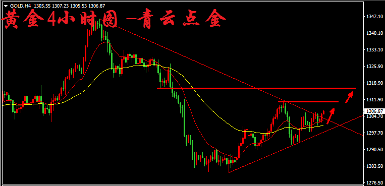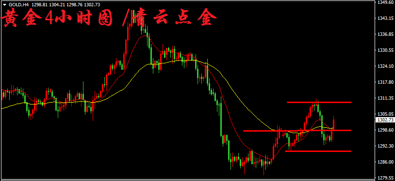 青云点金:3.19黄金经历1300整固后,短线谋求向上突破。 【消息面】 昨日欧美盘黄金持续在1302-1306区间振荡整理,盘中黄金最高至1306.09美元/盎司,美盘最终收盘在1303.37美元/盎司。今日(周二)亚市黄金开盘价1303.32美元/盎司,最高1307.23美元/盎司,最低1302.17美元/盎司,早盘黄金小幅上扬,目前黄金在1306附近整理。 昨日傍晚欧元区数据1月季调后贸易帐公布值为170亿欧元,好于预期150亿欧元和前值156亿,数据令欧元拉升,美元回落,黄金重新站上1300关口上方;晚间美国数据中的美国3月NAHB房产市场指数公布值62,稍低于预期63,与前值持平。