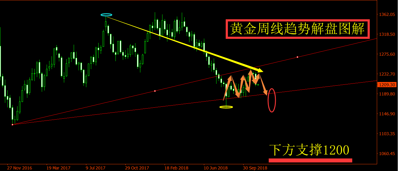 青云点金:11.12原油空头继续毋庸置疑,黄金空头才开始! 【消息面】 上周美联储利率之后,美元霸气外露,黄金陷入无尽深渊,美中期选举让美元成为最大赢家,非美货币全线下滑,本周美国方面还将有一系列重要数据出炉,包括美国恐怖零售报告、CPI数据,预计将引发市场轰动。若经济数据表现继续强劲,有望进一步推动美元下一步上涨,而金价面临超强压力的同时会寻求走探底之路。 【MT4黄金走势分析】 黄金早盘:上周看空我们没有多,整个一周都是以空为主,最早的1233空到现在已经比较经典了,就连上周五最差的1221空,也是不错的选择,所以说,顺势再差的位置也有收获的一天,而逆势也许哪天你户就没有也许了,今日布局