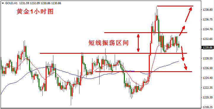 青云点金:10.25黄金持续高位振荡,短线逢低做多 【消息面】 今日亚市黄金振荡走高,黄金最高至1238.89美元/盎司,午后美元继续反弹上升,美元指数从96.17涨至96.37,相对黄金承压高位回落,日内黄金最低侄1230.05美元/盎司,黄金在1230位置获得企稳回升,目前黄金在1233附近整理。 昨夜美股暴跌后,亚太股市继续笼罩阴影,对今日亚市黄金形成利好,黄金再度迫近前日高点1239附近,不过午后美元走高令黄金上涨空间受限。 昨晚美联储两名官员继续发表鹰派言论,梅斯特表示,经济基本面仍然强劲,对联邦基金利率的长期预估值为3%。卡普兰则称,美联储应该渐进、有耐心地加息至中性利率水平,预