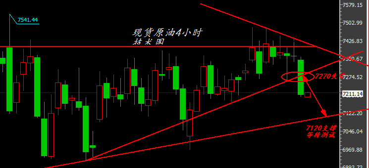 金泰铬:3月7日现货原油现货白银欧美盘大数据前操作建议 行情走势分析原油价格昨日收盘录得十字星形态,完成支撑后的反弹走势,在受到上方均线死叉影响后,多头力度并不充足,所以当前油价在4小时图中继续存在下滑。另外目前4小时图油价继续受到下行趋势线压制,价格位于7300附近,下行支撑价格位于7200/7180,预计跌破该位
