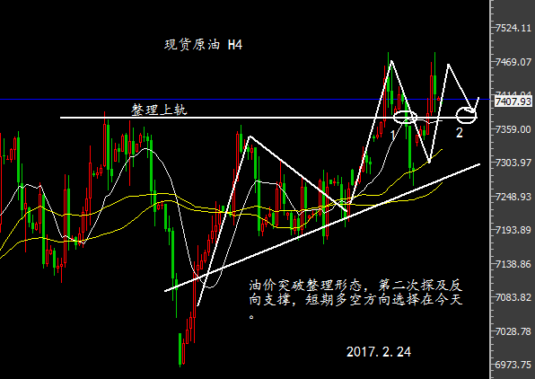 金泰铬:2月24日现货原油会如何演绎走势呢(附图行情分析) 今日凌晨公布的美国EIA原油库存数据显示,增加56.4万桶的数据,小于预期值和前值的数据对于原油构成了利好,数据一经公布,原油价格小幅冲高后大幅回落,而这样的走势也完全在笔者以及本分析团队的预期之内,而昨日晚间跟随笔者YY语音操作的投资者全部大获全胜。