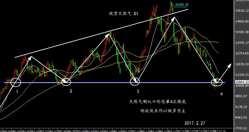 金泰铬:2月27日现货天然气日内操作建议关注分水岭11100位置 国内消息面重庆石油天然气交易中心日前挂牌成立,哈纳斯集团与中石油、中石化等共同成为该中心创始股东。专家认为,哈纳斯成功入股,将助推宁夏新能源产业全面升级。 日内行情分析天然气价格在上周五走出调整十字星之后,今天早间开盘出现不小幅度的低开。技术图