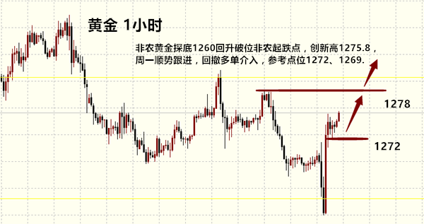 昨天的行情肯定是要空的,所以基本反弹就是做空机会,尽管昨日的空到1246区域目标并没有实现,相反的,欧盘开始反弹,反弹终究是反弹,因为周线冲高1280回落,加息也已经落地,行情反而上不去,那么无论从1295受阻,还是1280冲高回落来看,这都是空头的重新开始,那么反弹就不需要害怕,只是说周尾震荡收线,然后空单不打算