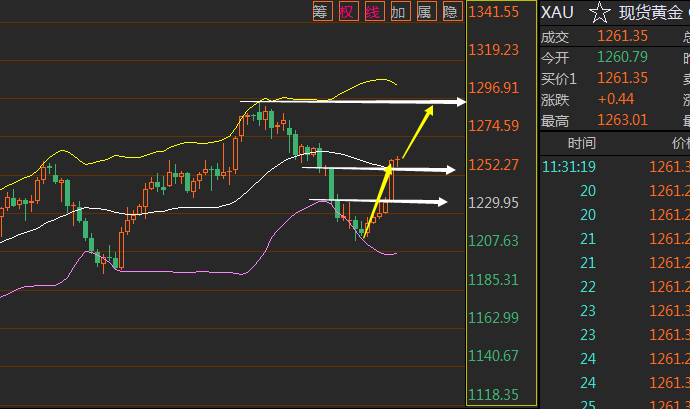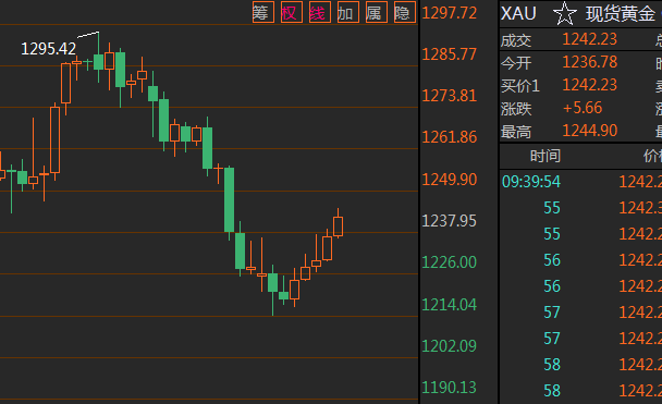 5.17黄金4连阳,中线抄底能否继续 本周行情无论是对散户还是机构,都是一次饕鬄盛宴。黄金价格止跌反弹之后,已经连续收取4根阳柱,有效脱离了连续八周的低位1210美元/盎司。昨日黄金价格也是随着行情一路反弹到1239附近。但是在晚间行情再度有所回落。对于很多散户来说,今天行情能否再度抄底让人陷入了纠结的阶段。毕竟低