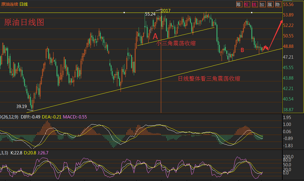 生活中没有没有谁能一帆风顺,总有那么多坎坷在前方等着你,你能否跨过去便显得异常重要,就像最近的行情,一周的单边下跌看似一帆风顺,接下来迎接它的便是一周的震荡。有多人盼着抄底,但行情确迟迟不曾触动,依旧震荡下行,好在前面那个坎一直不曾跨过。 早间原油给出的48.77的多单,止损在趋势线支撑的点48.3,亚盘震荡