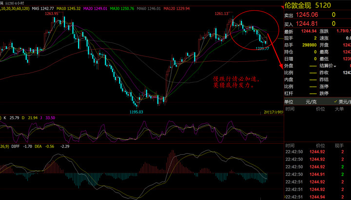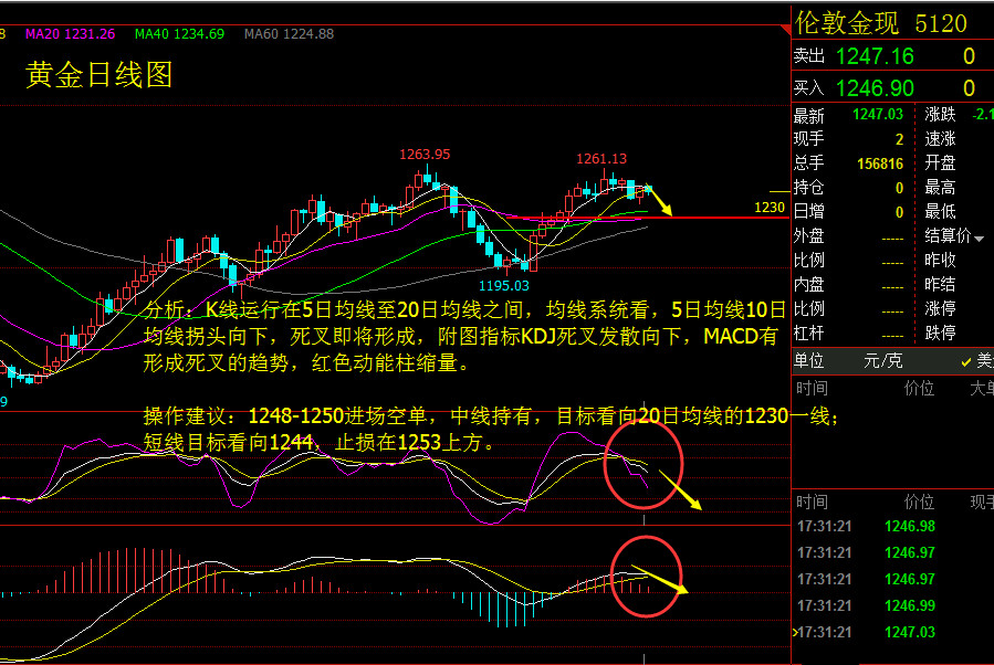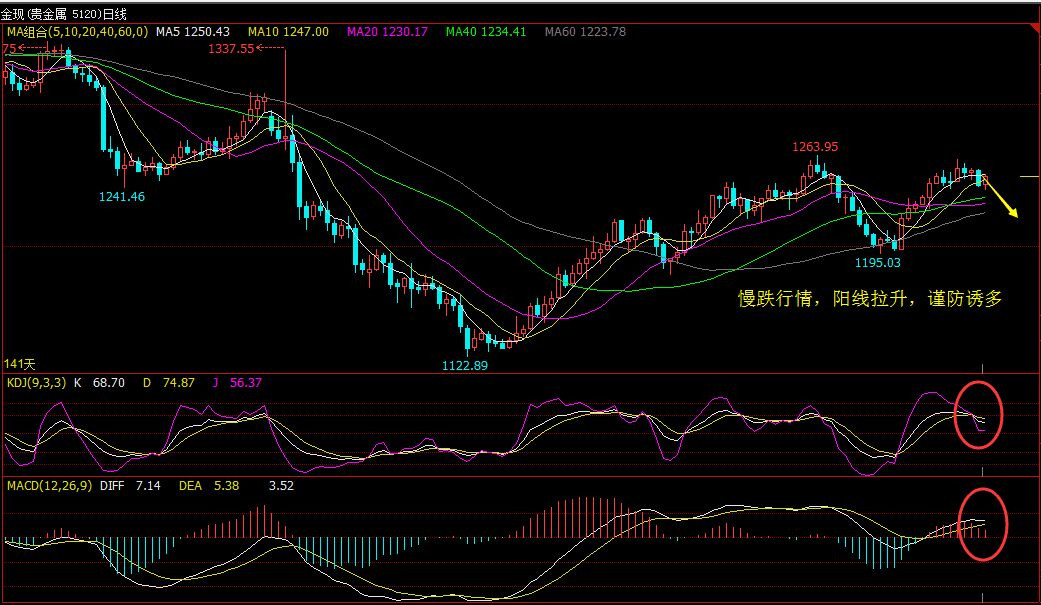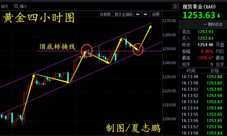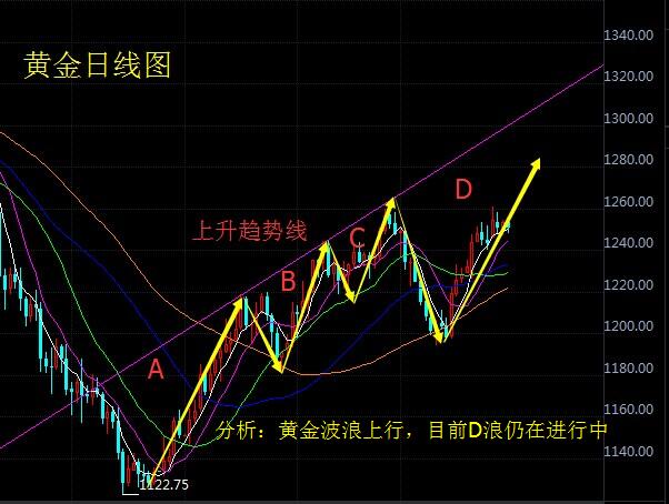 今日感悟 投资就像一本书,作者就是你,不同个体不同的故事,记载着投资之路上的酸甜苦辣。情节蜿蜒曲折、扑朔迷离,是一本只有用心才能读懂的书。这本书,一生只能读一次,却要用一辈子去领悟。 上周五晚间黄金在1240拉升至1250一线,很多人都以为这是这是趋势的反转而在高位追了多单,其实不是,本人已经在周评中讲过,黄
