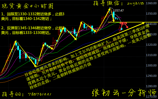 交易情绪 对于昨天现货黄金的走势张初云就一个词佩服!这个佩服不是说张初云老师带操作很顺利,完美把握到上方1356的空单,实际昨天张初云这边的操作还是有些有惊无险的,在1253附近布局多单之后,欧盘末尾大力下探下破1351阻力位一线后这一次老师给出的损多轻仓空的策略,算是把多头的亏损挽回来了小赚一些。对于今天这个走