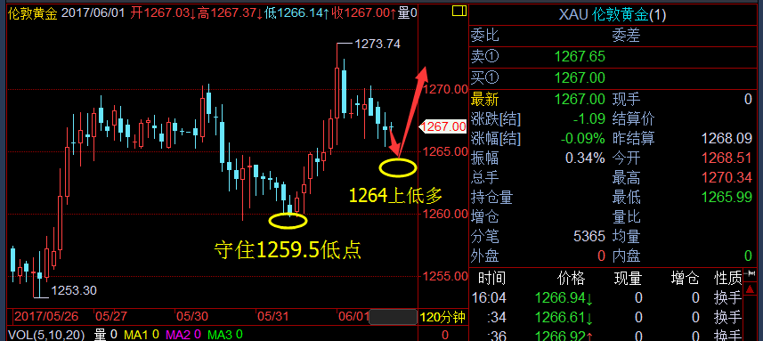 昨晚公布的ADP是黄金下跌关键性因素,在公布之前市场已经逾期5月ADP表现将较为靓丽,亚盘震荡欧盘走低,公布结果25.3远超前值和预期值,使得市场预期5月非农就业数据也将靓丽,6月加息概率进一步提升,打压金价。 凌晨黄金在1259.5低点上有一定程度反弹,主要是因为特朗普宣布退出巴黎气候协定,这在一定程度上让政治风险升